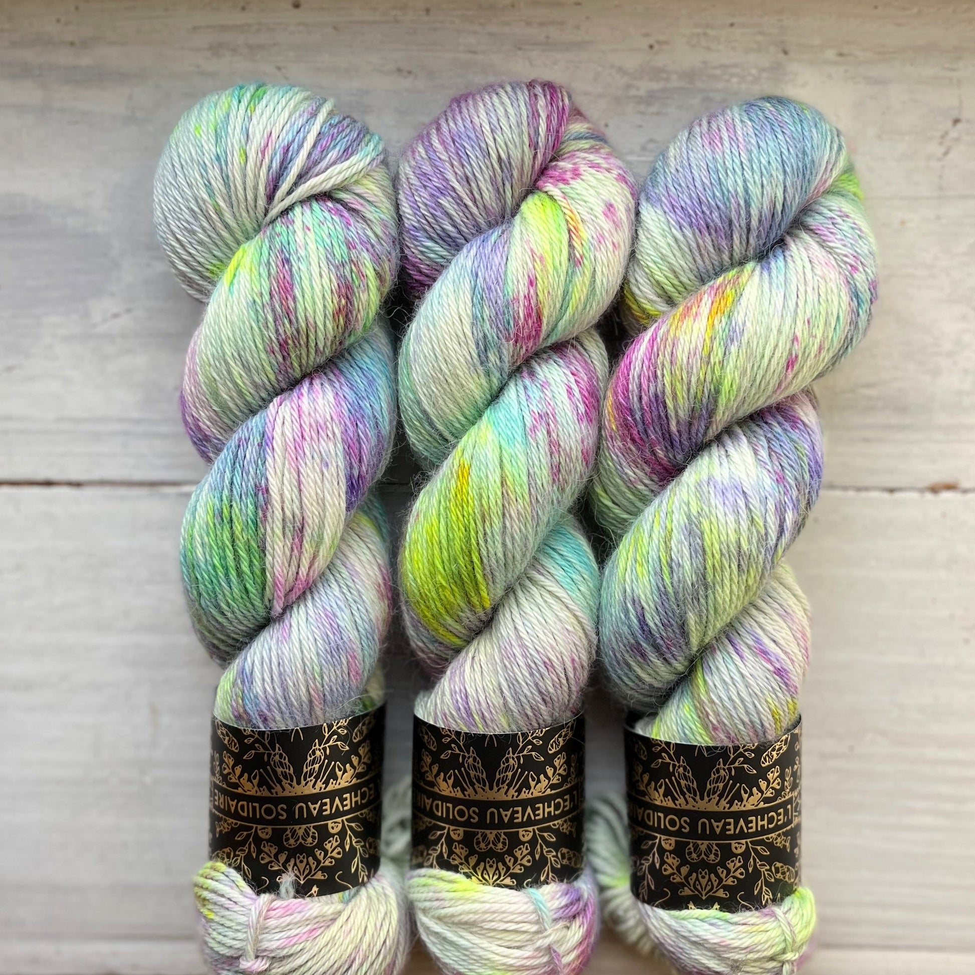 This yarn is sourced and spun in the UK, and hand-dyed in our atelier in France.